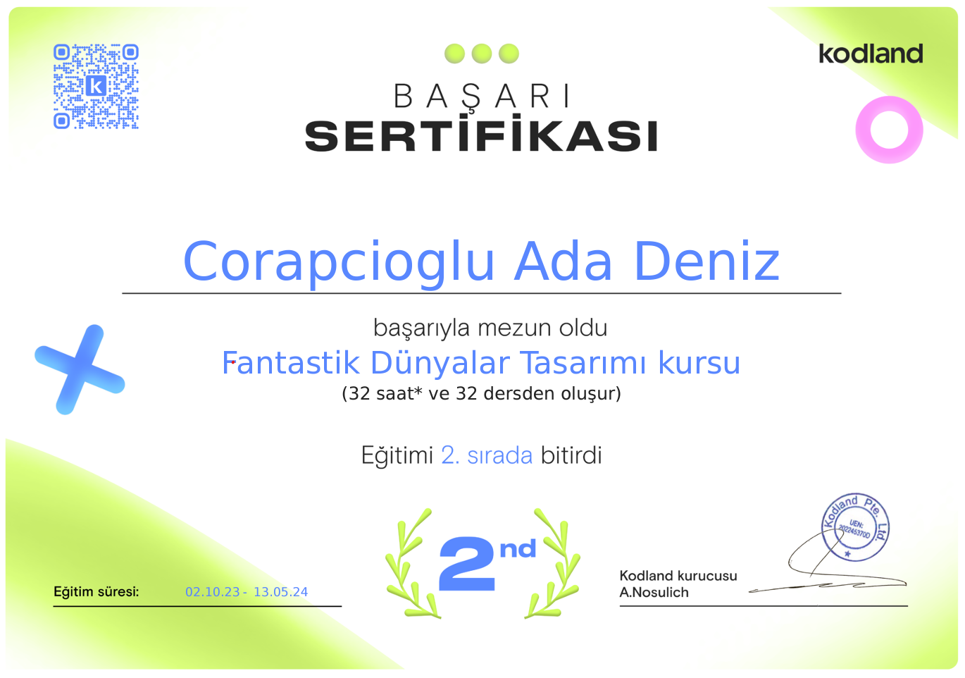 Ada Kodland tarafından verilen Fantastik Dünyalar Tasarımı kursuna katılım sağlamıştı. Kursun son bölümüne devam etmek istemedi. Bunun çeşitli nedenleri olabilir. Bu konuya ileride değinmemiz gerekecek gibi …