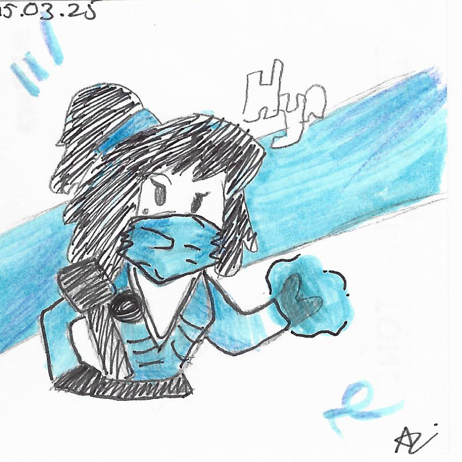 Ada karikatür çalışmalarını çok seviyor. Bulduğu en küçük kağıt parçasına eğer o an istediği bir kalemi de bulabiliyorsa hemen çizim yapıyor.